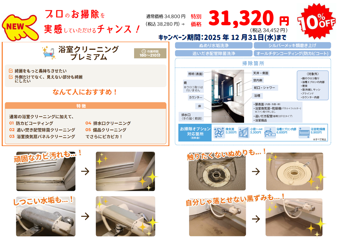 浴室クリーニングにワンランクアップしたお掃除のご注文を開始!